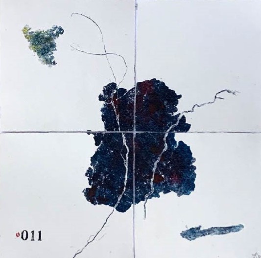 Toujours travaillant sur la trace (ici, la rouille), proche de l’archéologie des temps présents et anciens, on peut deviner des paysages où la couleur apparaît comme une surprise, laissant surgir à des encrages différents des perceptions originales.