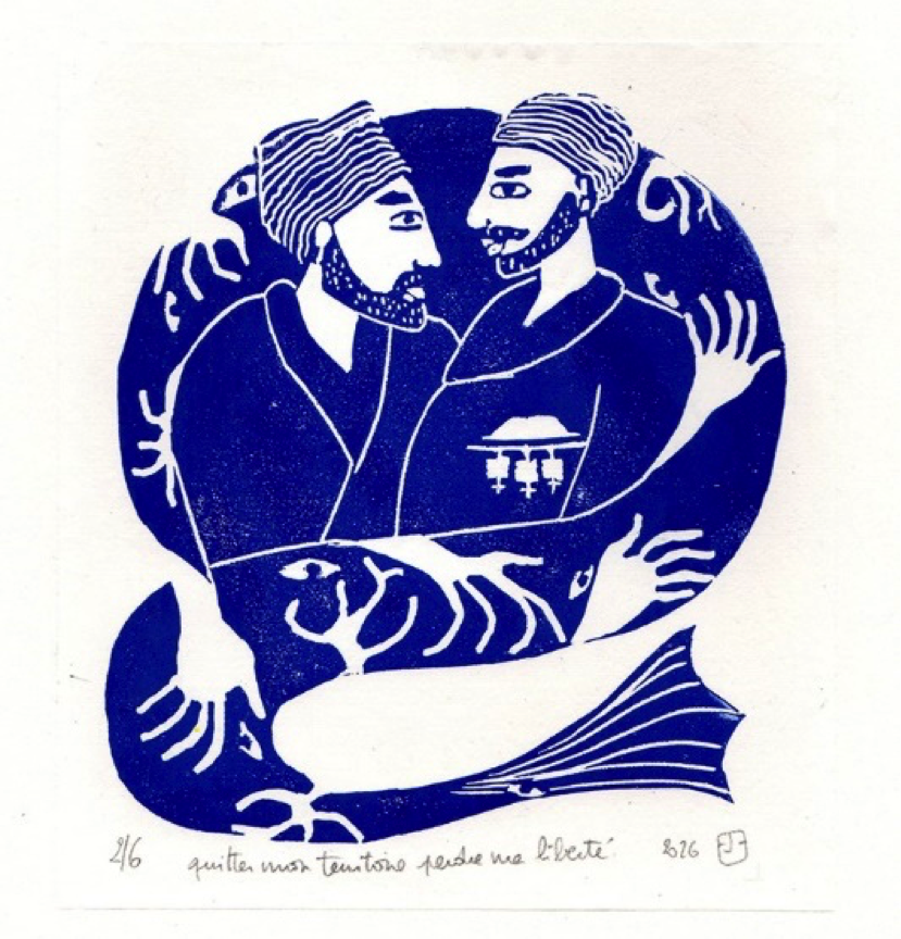 « quitter mon territoire perdre ma liberté », linogravure.
