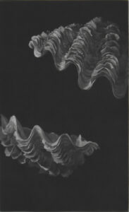 Judith ROTHCHILD propose, pour cette exposition autour du voyage, une sélection de gravures en manière noire des coquillages du Pacifique sud.